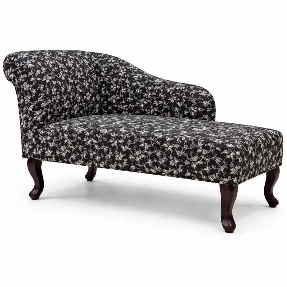 Unsere Chesterfield Recamiere bietet eine bequeme Sitzgelegenheit für Ihr Wohnzimmer oder Schlafzimmer. Das Design mit dicker Polsterung lädt zum entspannten Verweilen ein. Robuste Holzfüße sorgen für Stabilität. Mit einer Länge von 104 cm bietet die Chaiselongue ausreichend Platz zum Ausstrecken. Der schwarz-weiße Stoffbezug besteht aus 100% Polyester.